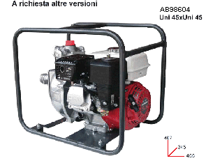 aspirazione DN 80 mandata UNI 70, avviamento elettrico o manuale, batteria 12 Volt.